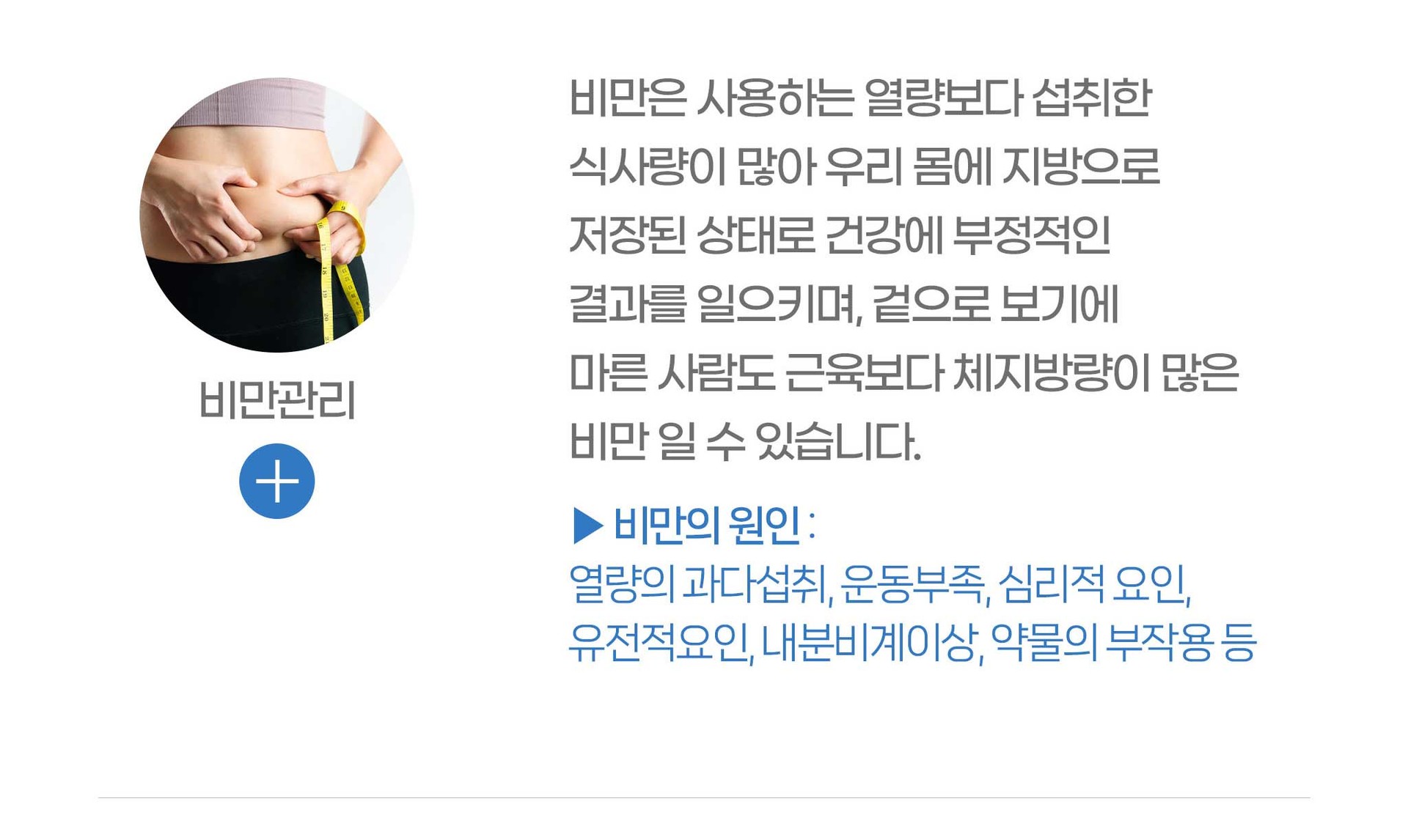 비만의 원인, 비만의 형태, 합병증 여부에 따라 개별적 특성에 맞는 체중감량 관리