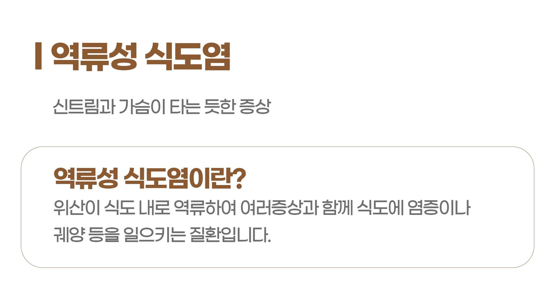 위산이 식도 내로 역류하여 여러 증상과 함께 식도에 염증이나 궤양 등을 일으키는 질환입니다.