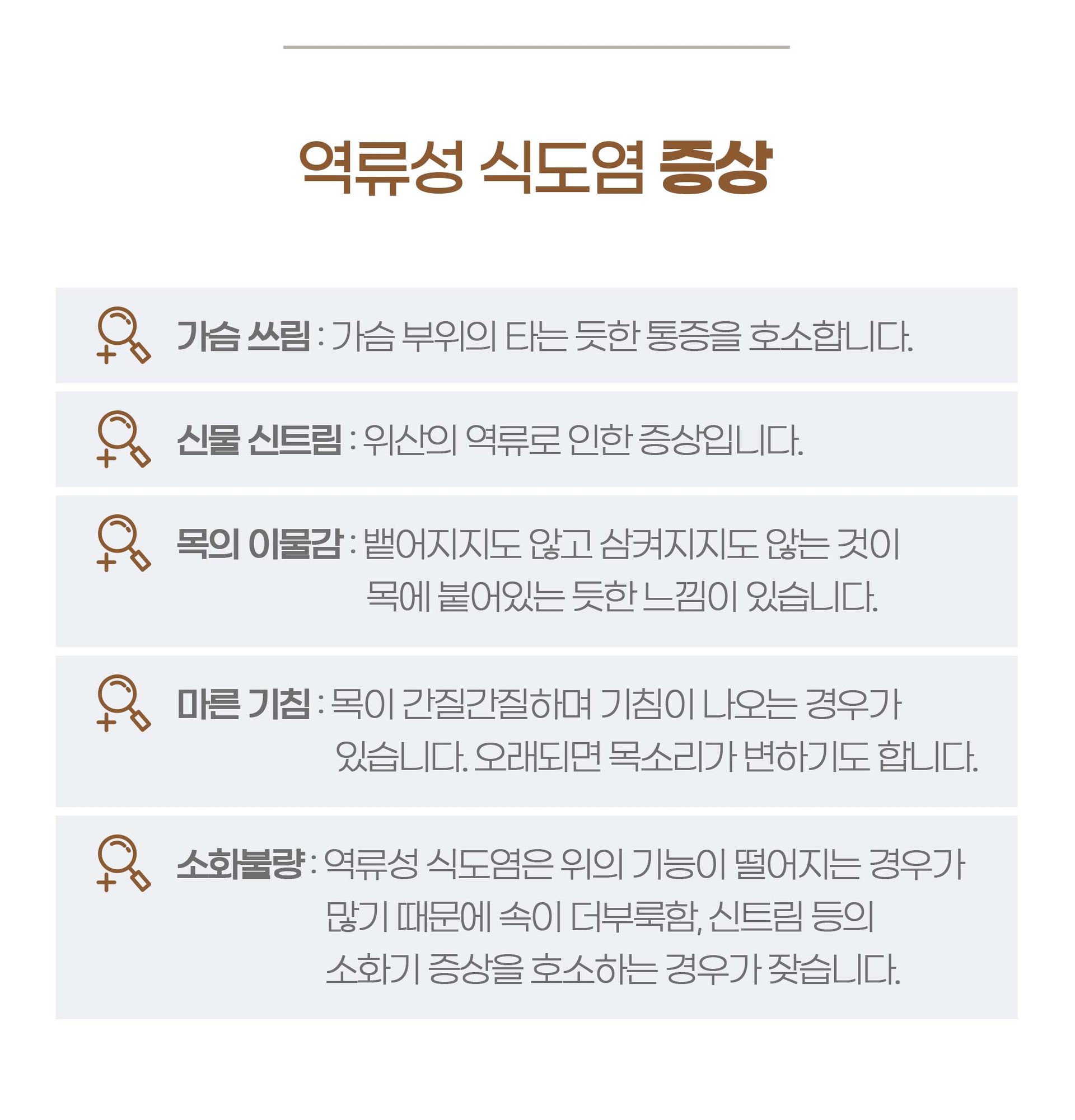 가슴쓰림 : 가슴 부위의 타는 듯한 통증을 호소합니다.