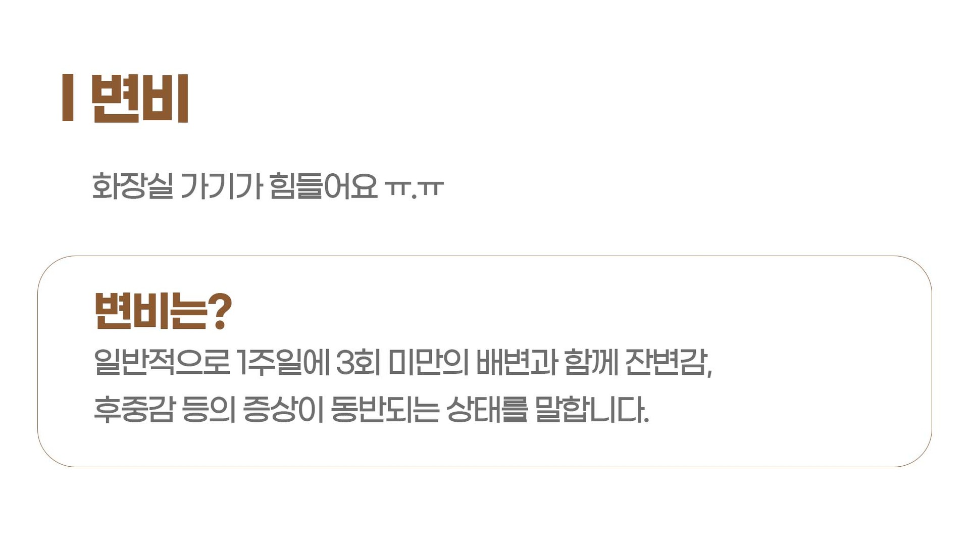 일반적으로 1주일에 3회 미만의 배변과 함께 잔변감, 후중감 등의 증상이 동반되는 상태를 말합니다.
