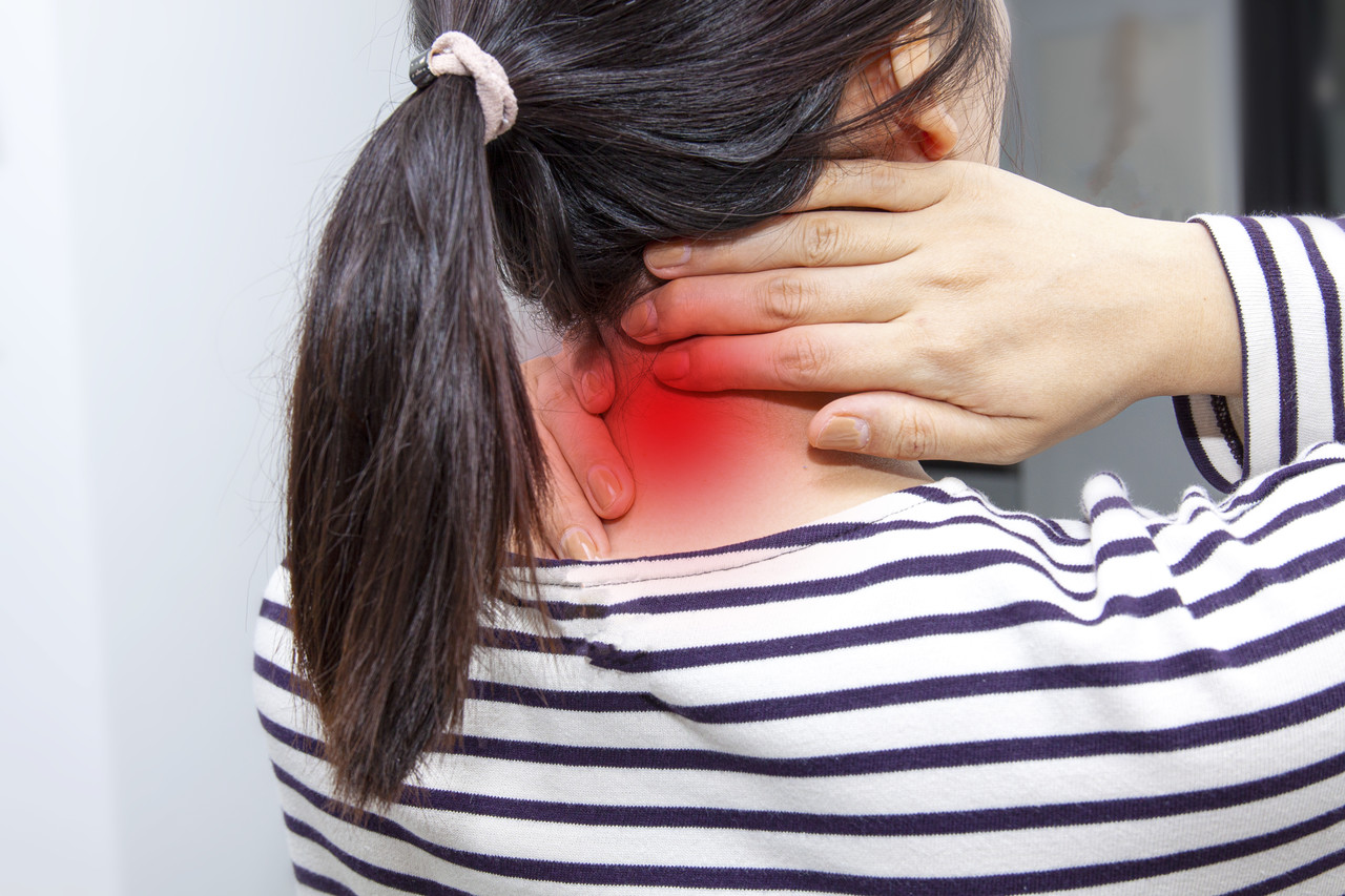 목을 뒤로 젖히면 통증이 더 심해진다.