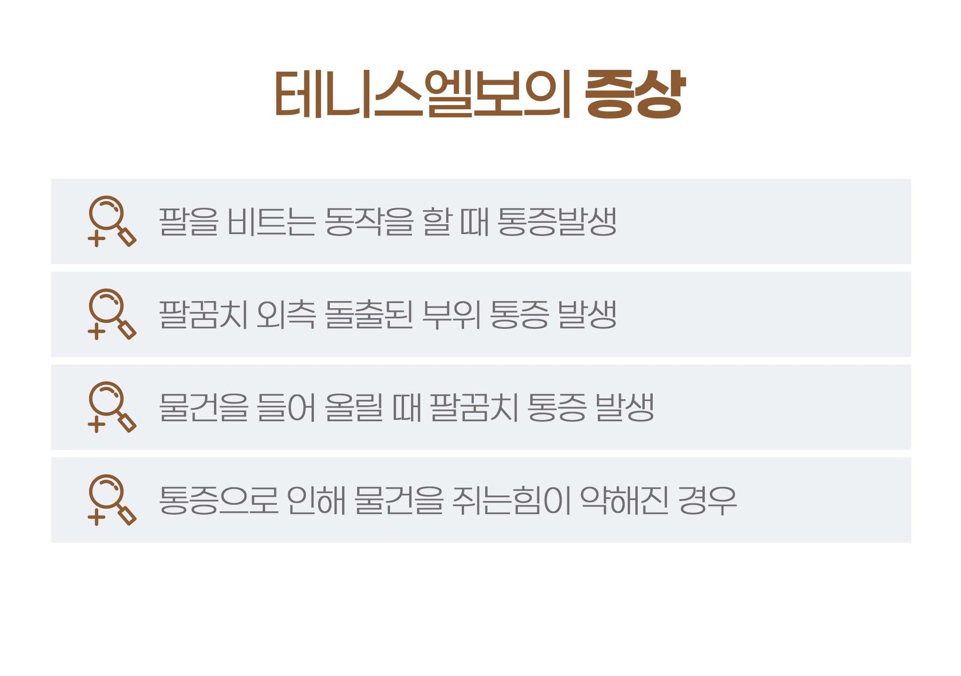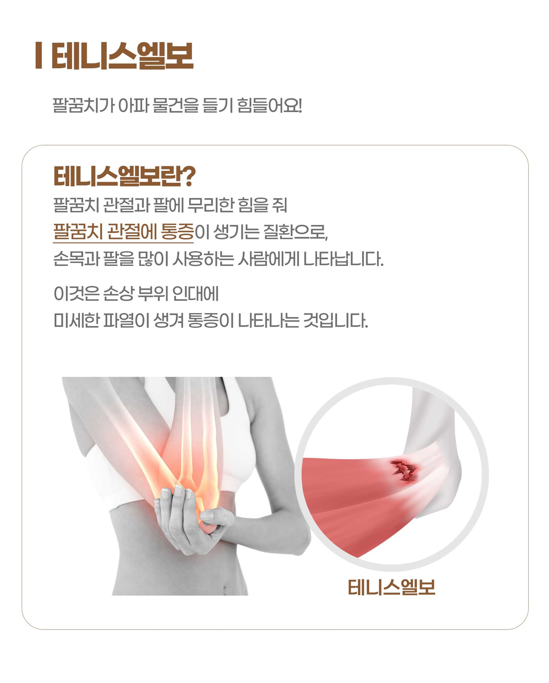 팔꿈치 관절과 팔에 무리한 힘을 줘 팔꿈치 관절에 통증이 생기는 질환으로,