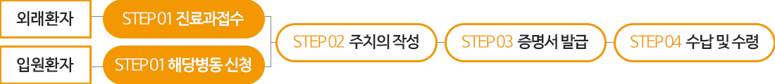 해당과 접수 | 담당의사 작성 | 직인 날인 후 서류 교부 |